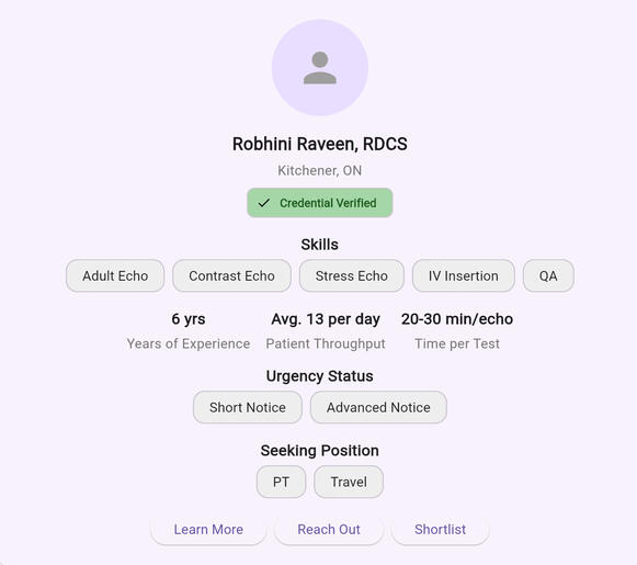 1. Pre-vetted and certified cardiac techs only.2. Skills, certifications, and experience guide every match.3. Reduce clinic downtime and tech wait times.